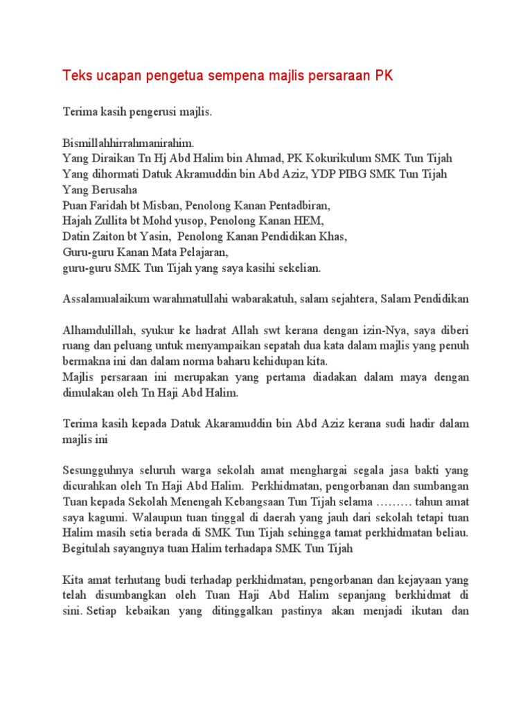 Related : Teks Ucapan Guru Bersara : Tengku munirah binti ahmad guru penolong kanan hal ehwal murid..