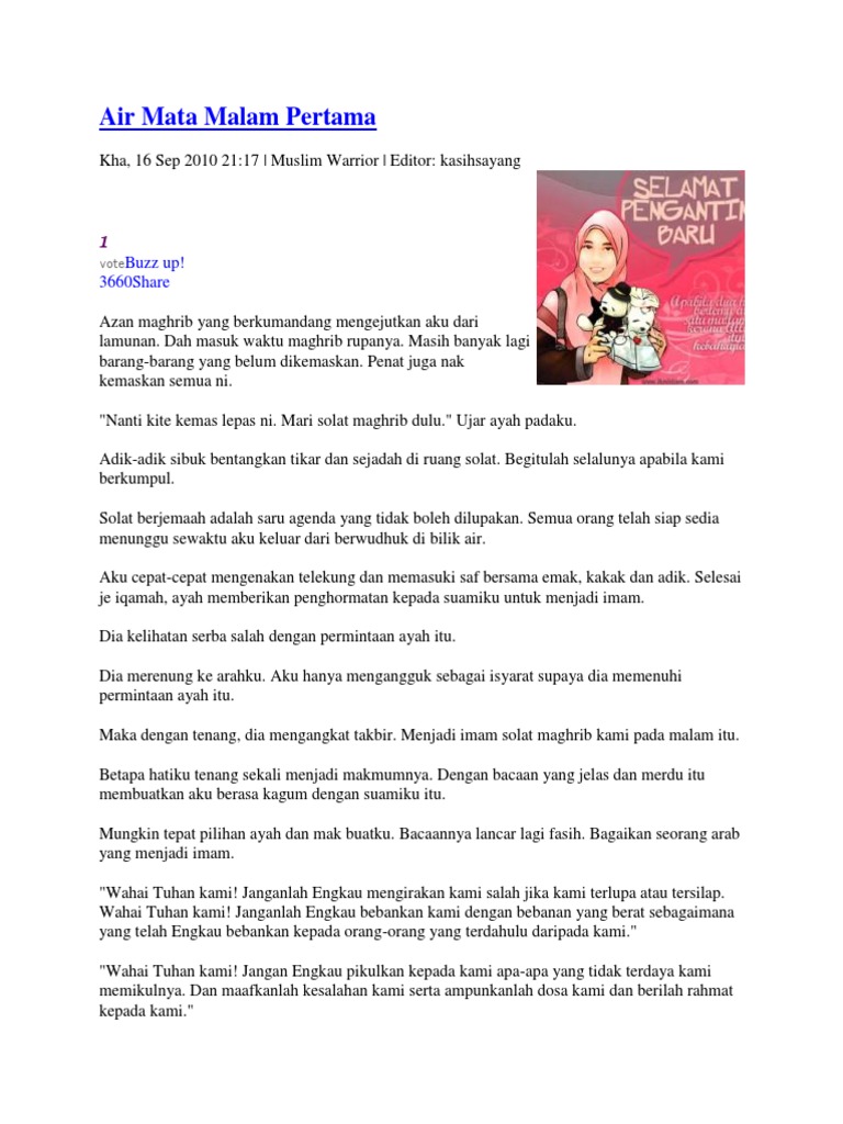 Aku tunggu ash sambil tengok tv. Iman nak abang bangun dan bisikkan kata cinta di telinga iman. Umi rasa suami umi kejam. Sanak saudara duduk mengelilingiku sambil memerhatikan gerak geri seorang lelaki yang berhadapan dengan bapaku serta tuan imam. Tanya aku pada biras aku saodah. Memang tidak mungkin dia hendak meninggalkan aku sekejap dekat sini. Sampai saat ini abang susah nak percaya bahawa hani dalam diam tergamak selingkuh di belakang abang. Biarlah wawa sekejap dekat sini, malam nanti mailah ambil. lili bersenda. Cerpen suami untuk aku kemaafan? zara merenung tajam wajah suaminya. Kalau cara abang sayangkan ana adalah dengan…dengan sakitkan ana macam ni, ana tak nak sayang abang tu. El ni abang tiri kamu ye sayang. Terlalu sukar untuk kugambarkan perasaan hatiku tatkala ini. '' ariz, ni ibu nak kenalkan, adik tiri kamu.
